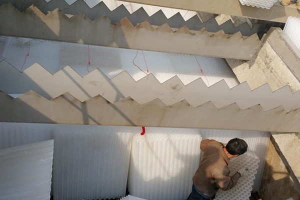 ? ? ? ? 二、蜂窩斜管分油法:蜂窩斜管分油法是將除油池在同一過(guò)水?dāng)嗝嫔戏殖扇舾尚「?,各自越小,則其分流效果越好,但格子太小易產(chǎn)生阻管現(xiàn)象,所以常用邊長(zhǎng)為35、50、80mm的正六邊形等規(guī)格斜管。廢水進(jìn)入廢水池時(shí),含油廢水緩慢上升時(shí),因?yàn)橛秃退拿芏扔胁町?,而使得油水逐漸分離。綠源凈水的蜂窩斜管填料耐腐蝕,不沾油,光潔度好,常用材質(zhì)是聚酯玻璃鋼、乙丙共聚(PP)。